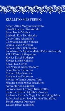 Sikeresen befejeződött az Első Tiszakécskei Országos Fazekas Kiállítás és Népművészeti Vásár Tiszakécskén az Arany János Művelődési Központban, ahol gazdag kínálattal és színes programokkal, kiállítóink szebbnél-szebb egyedi alkotással várták az érdeklődőket! Fazekas mestereink mellett gyöngyfűzők, kosárfonók, fafaragók, hímzők, kékfestők, viseletkészítők minőségi darabjai közül is kedvükre válogathattak!